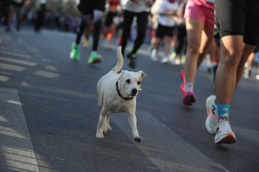 Παράλληλα, άλλος δρομέας επέλεξε να συμμετάσχει μαζί με το σκυλάκι του, δημιουργώντας μια ευχάριστη και χαρούμενη εικόνα για τους θεατές.