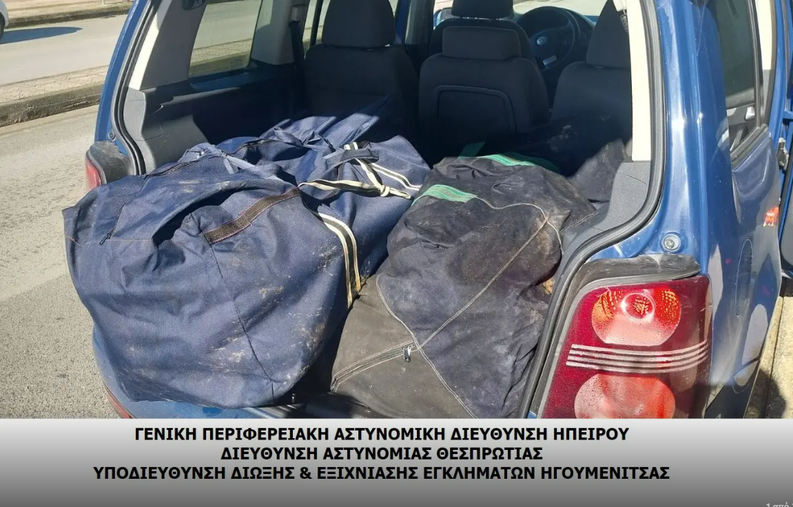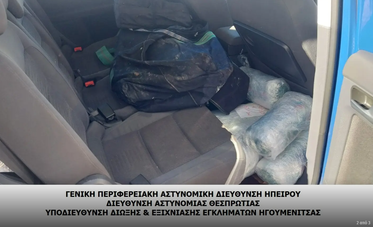 Ειδικότερα, οι αστυνομικοί εντόπισαν σε περιοχή των Φιλιατών Θεσπρωτίας, στο πλαίσιο στοχευμένων ελέγχων, ένα αυτοκίνητο το οποίο κινείτο ύποπτα.