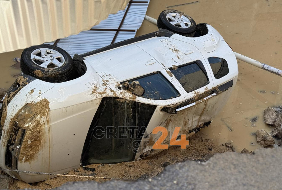 Ηράκλειο: Απίστευτο περιστατικό – Υποχώρησε το οδόστρωμα και “βούλιαξε” αυτοκίνητο