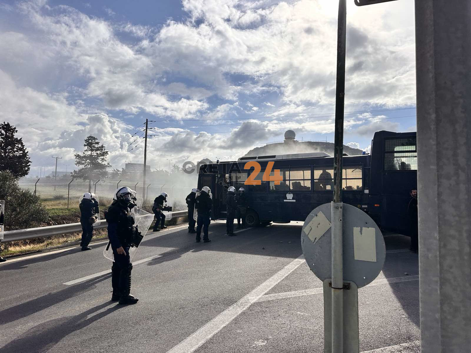 Οι αστυνομικοί απάντησαν με ρίψη χημικών και κρότου λάμψης στην προσπάθεια των αγροτών να σπάσουν τον αστυνομικό φραγμό και να αποκλείσουν το αεροδρόμιο Ηρακλείου “Νίκος Καζαντζάκης“.