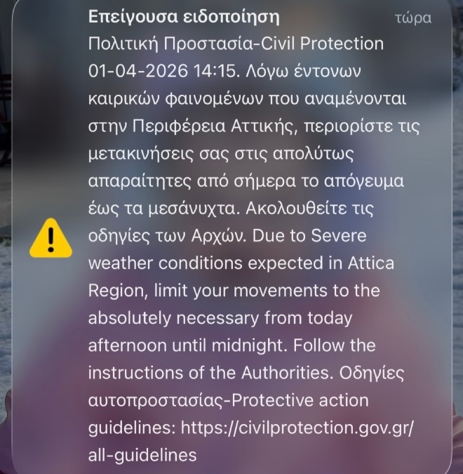 ℹ️…— 112 Greece (@112Greece) April 1, 2026