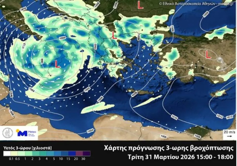 ✅Η κακοκαιρία #Erminio εξελίσσεται, μέχρι στιγμής, ομαλά ως προς τη γενική της οργάνωση, επιβεβαιώνοντας σε γενικές γραμμές την εκτίμηση ότι το κυριότερο επεισόδιο θα εκδηλωθεί μέσα σε ένα σχετικά συμπυκνωμένο χρονικό παράθυρο. Ο… pic.twitter.com/wNQkISPxTV— Theodoros Kolydas (@KolydasT) March 31, 2026