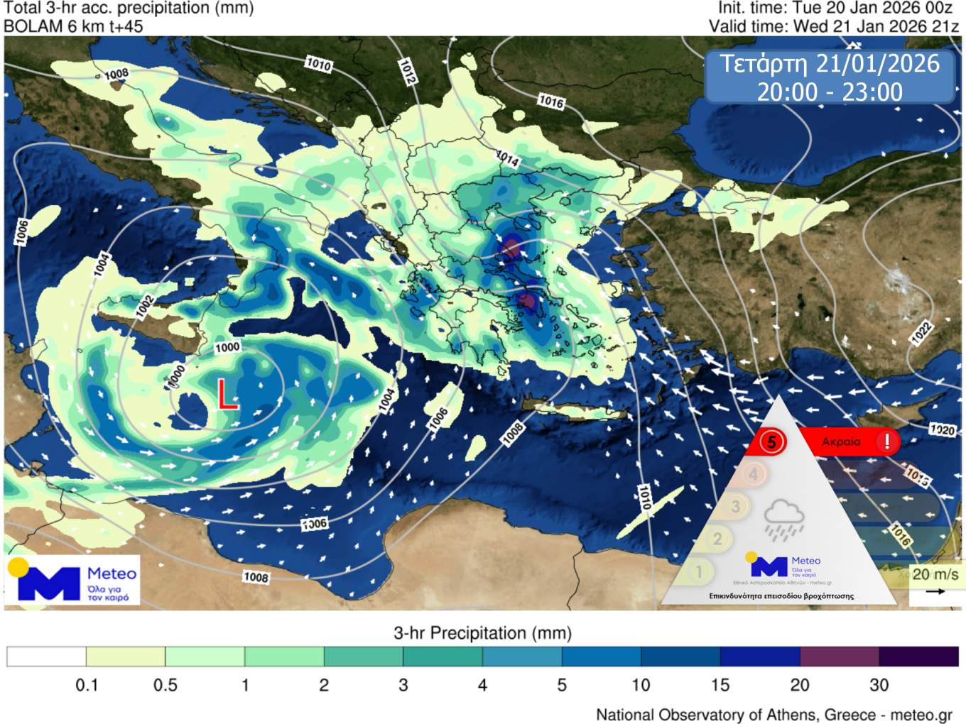 ✅Κακοκαιρία προβλέπεται στη χώρα μας αύριο Τετάρτη 21-01-2026 και μέχρι το μεσημέρι της Πέμπτης 22-01-2026 με κύρια χαρακτηριστικά τις ισχυρές βροχές και καταιγίδες από νωρίς το πρωί της Τετάρτης σε πολλές περιοχές της… pic.twitter.com/A3b8lM69bu— Theodoros Kolydas (@KolydasT) January 20, 2026
