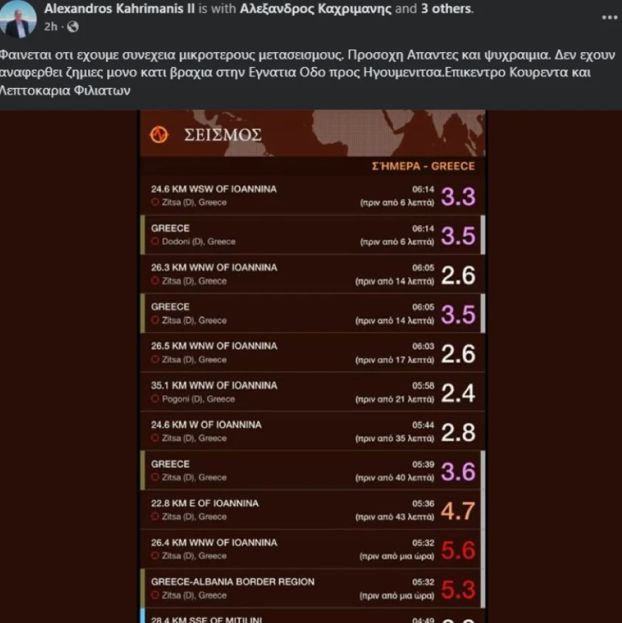 Ο σεισμός έγινε αισθητός σε πολλές περιοχές της Ηπείρου