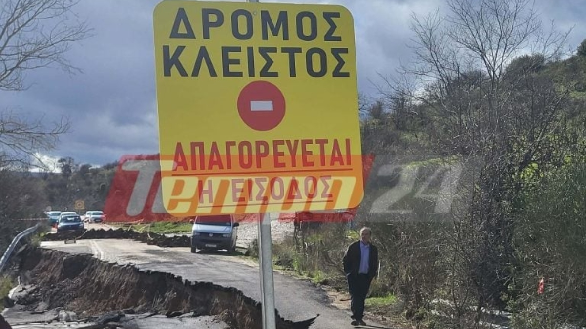 Εκτεταμένη καθίζηση έχει υποστεί η εθνική οδός Πατρών – Τριπόλεως, στο ύψος της Δίβρης, με το οδόστρωμα να έχει κοπεί στα δύο.