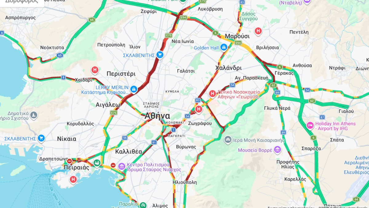 Κίνηση: Μποτιλιάρισμα σε Κηφισό και Σχιστό – Στο “κόκκινο” Κηφισίας και Αττική Οδός