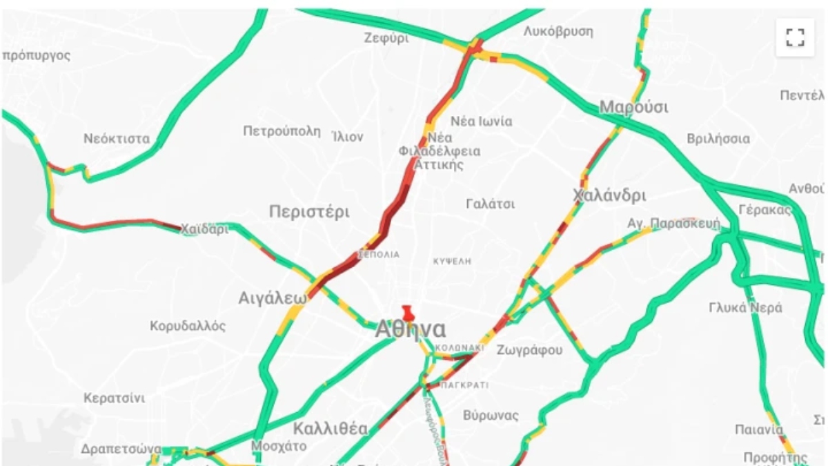 Προβλήματα παρουσιάζει και η λεωφόρος Αθηνών, με την κίνηση να είναι στο “κόκκινο” από το Χαϊδάρι έως τον Σκαραμαγκά και στα δυο ρεύματα.