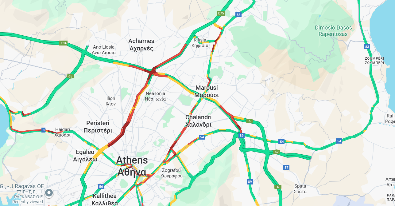 Κίνηση αντιμετωπίζουν οι οδηγοί και στην Κηφισίας, τη Μεσογείων, τη λεωφόρο Αθηνών από Χαϊδάρι, τον Καρέα, την παραλιακή. Στην Αττική οδό καθυστερήσεις στο ρεύμα προς Αεροδρόμιο άνω των 30′ από Φυλής έως Κηφισιάς και στο ρεύμα προς Ελευσίνα 10′-15′ από Πλακεντίας έως Κηφισιάς.