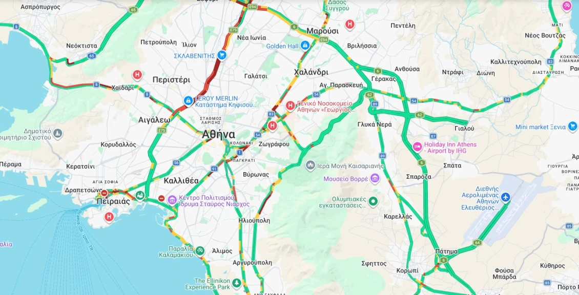 Παρόμοια είναι η κατάσταση και στη λεωφόρο Κηφισίας, και στα δύο ρεύματα κυκλοφορίας αλλά και στη Μεσογείων. Τέλος, με χαμηλές ταχύτητες κινούνται οι οδηγοί στη λεωφόρο Αθηνών και στους δρόμους γύρω από το λιμάνι του Πειραιά.
