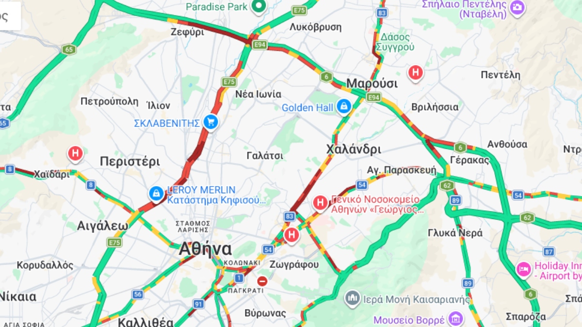 Τα μεγαλύτερα προβλήματα καταγράφονται στον Κηφισό, με τα οχήματα να κινούνται με χαμηλές ταχύτητες στο τμήμα από τη Μεταμόρφωση έως το Περιστέρι και την κυκλοφορία να διεξάγεται μετ’ εμποδίων.