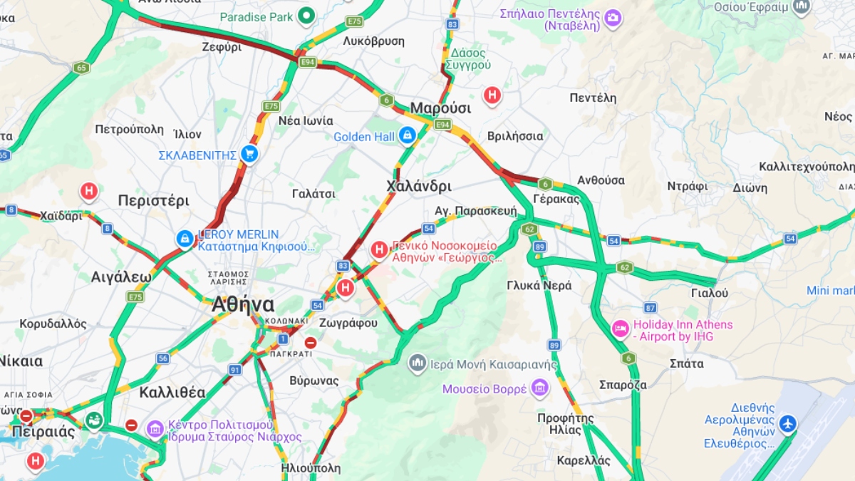 Κίνηση: Στο “κόκκινο” η Αττική Οδός και ο Κηφισός – Καθυστερήσεις και στο κέντρο της Αθήνας