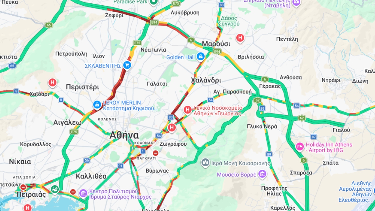 Καθυστερήσεις σημειώνονται επίσης κατά τόπους και στις λεωφόρους Κηφισίας και Μεσογείων, με τους οδηγούς να χρειάζεται να οπλιστούν με υπομονή λόγω της αυξημένης κίνησης.