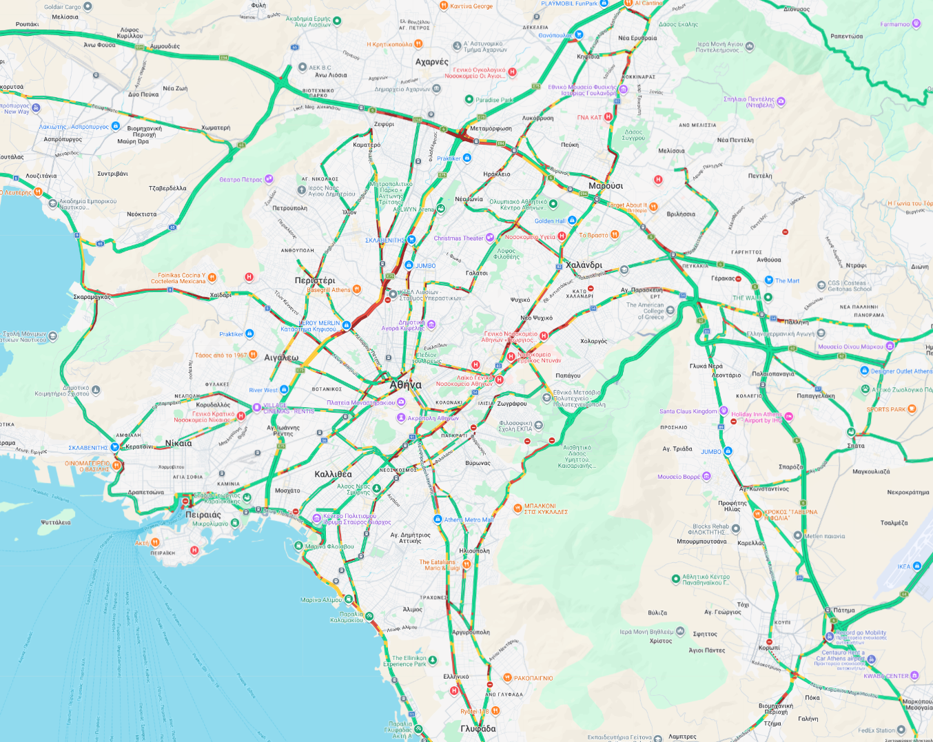 Στο κέντρο της Αθήνας η κίνηση είναι πολύ αυξημένη, όπως και στη Λεωφόρο Κηφισίας όσο και σε άλλους δρόμους της Αττικής.