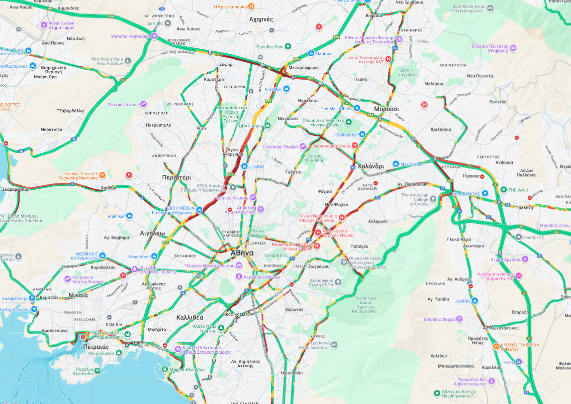 Πιο συγκεκριμένα, στο “κόκκινο” είναι ο Κηφισός από τη Λεωφόρο Αθηνών έως τη Νέα Φιλαδέλφεια και στα δύο ρεύματα, η Κηφισίας από τους Αμπελόκηπους έως το Χαλάνδρι, καθώς και η Λεωφόρος Ποσειδώνος από το ύψος της Λεωφόρου Αλίμου.