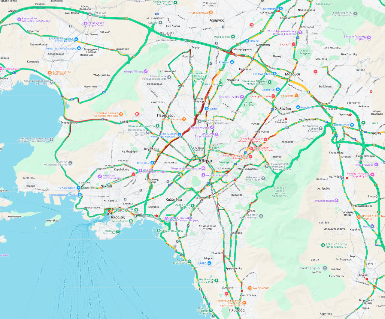 Μποτιλιάρισμα υπάρχει και στους δρόμους γύρω από το λιμάνι του Πειραιά, ενώ καθυστερήσεις υπάρχουν και στην άνοδο της Πειραιώς.