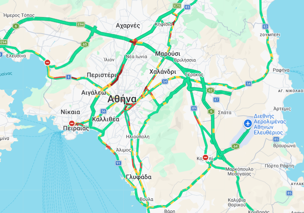 Κίνηση τώρα: Προβλήματα στους δρόμους της Αττικής – Στα “κόκκινα” ο Κηφισός