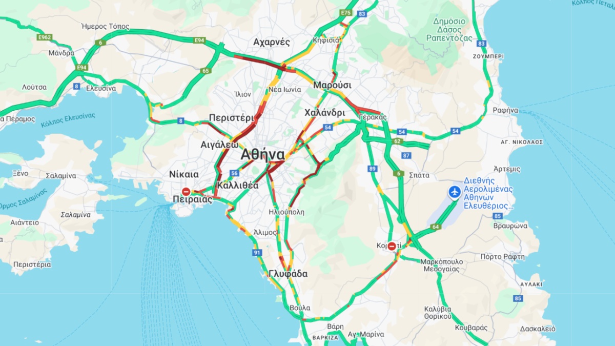 Ουρές σχηματίζονται σε Μεσογείων και Κηφισιάς κατά τμήματα και στα δύο ρεύματα, στη λεωφόρο Αθηνών από το Χαϊδάρι προς Ασπρόπυργο, στην ανηφόρα του Καρέα αλλά και στην παραλιακή.