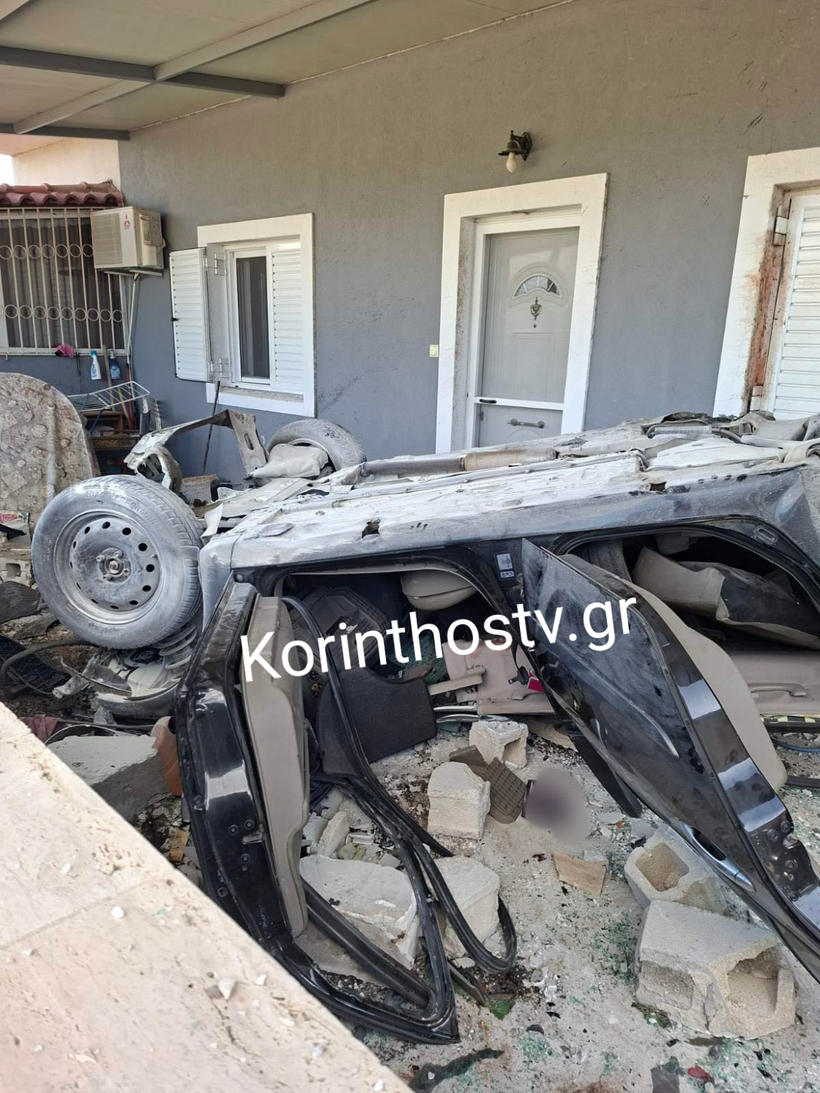 Κορινθία: Απίστευτο τροχαίο στα Εξαμίλια – Αυτοκίνητο κατέληξε σε σπίτι, 2 σοβαρά τραυματίες (βίντεο)