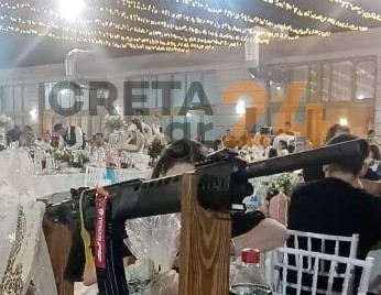 Η φωτογραφία ντοκουμέντο με όπλα στην Κρήτη επιβεβαιώνει του λόγου το αληθές. Την μετέδωσε πρώτο το creta24.gr και δείχνει ένα πολεμικό όπλο το οποίο είναι στολισμένο και βρίσκεται πάνω στο τραπέζι του γαμπρού και της νύφης. Και όλοι οι παριστάμενοι καλεσμένοι στον γάμο ήταν χαρούμενοι και περήφανοι για το θέαμα.