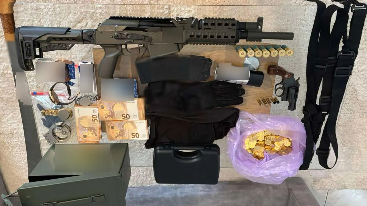 Στους χώρους εντοπίστηκαν επίσης αορτήρες, κουκούλες full-face, γάντια, χειροπέδες, ματσέτα και ρόπαλα, έξι άδειες όπλων και τρεις συναλλαγματικές.
