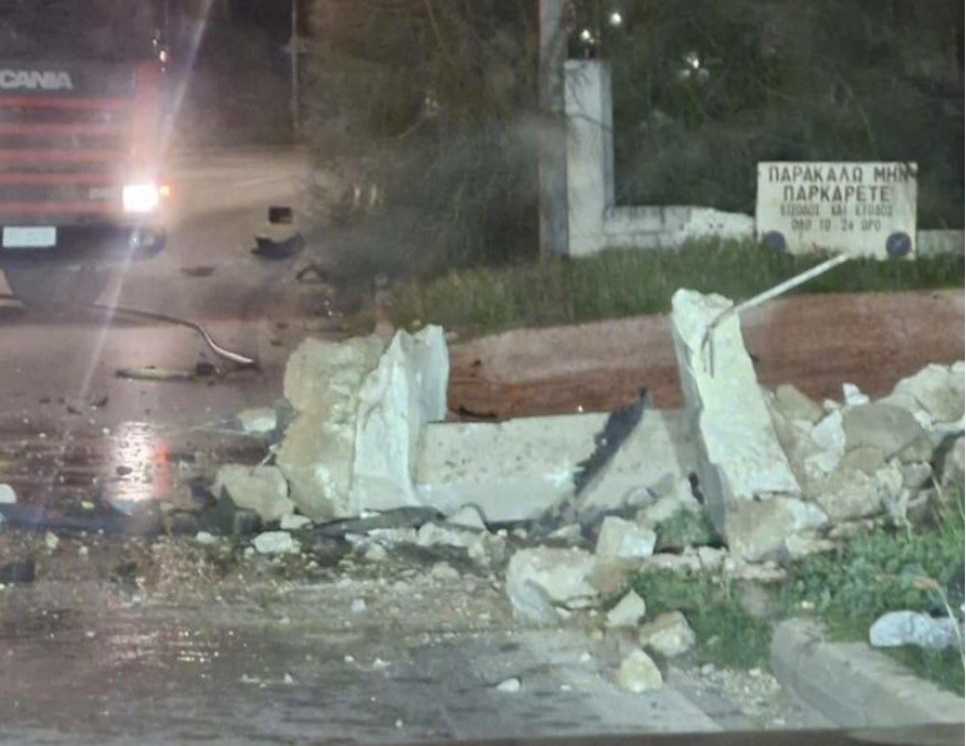 Το όχημα έπεσε πάνω σε μάντρα και ανετράπη