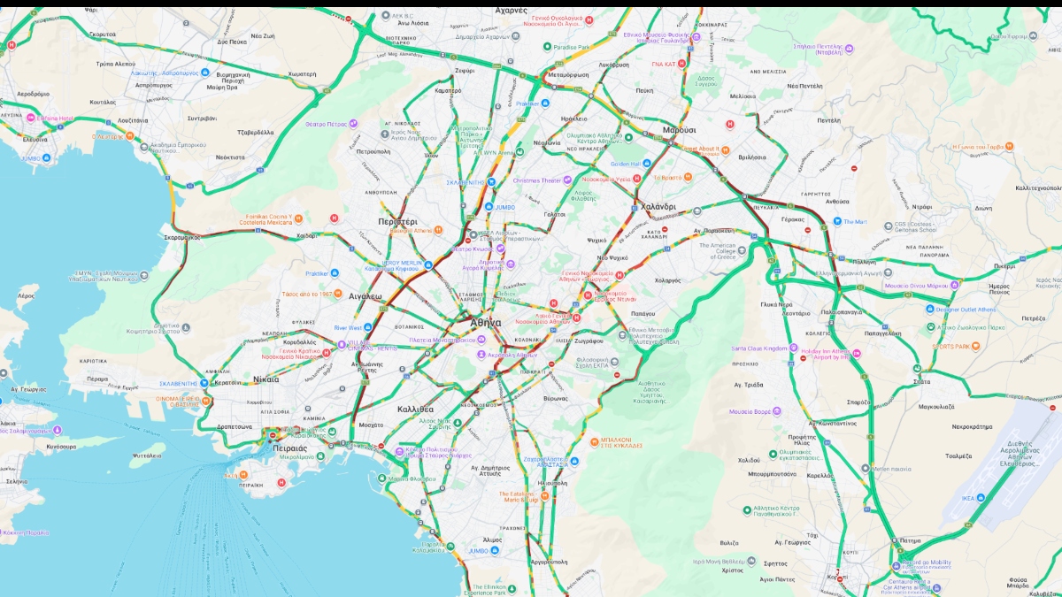 Συγκεκριμένα, ουρές χιλιομέτρων έχουν σχηματιστεί στην άνοδο του Κηφισού, από το Φάληρο έως τη Νέα Φιλαδέλφεια. Ταυτόχρονα, μποτιλιάρισμα παρατηρείται σε όλους τους κεντρικούς δρόμους στο κέντρο της Αθήνας.