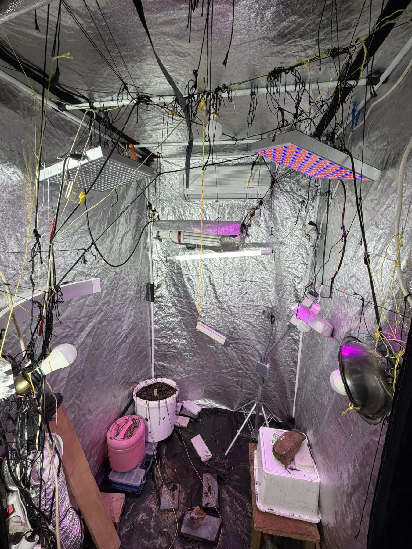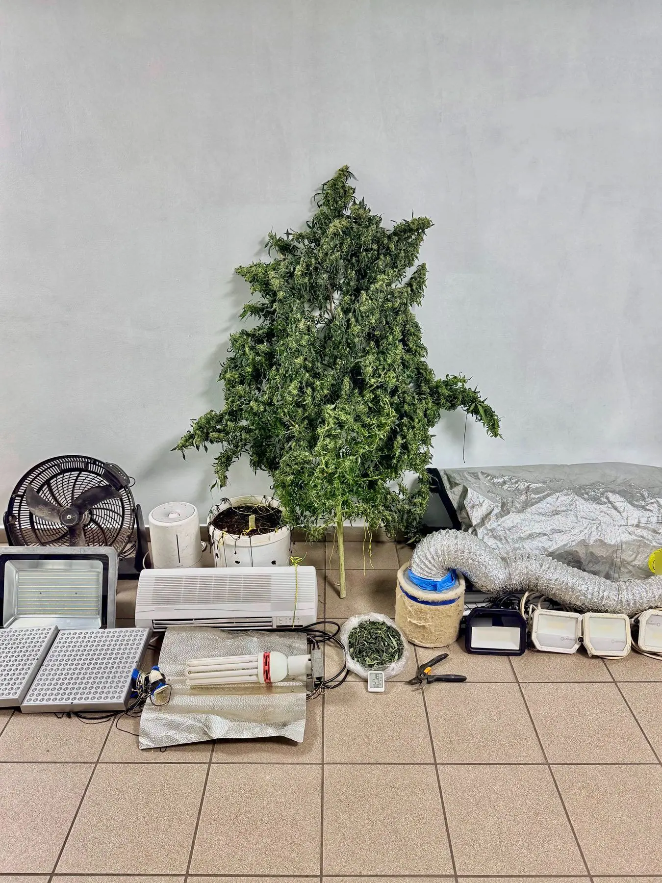 εξοπλισμός για την καλλιέργεια κάνναβης (σκηνή υδροπονικής καλλιέργειας, σύστημα εξαερισμού, θερμαντικό σώμα, προβολείς, λαμπτήρας, ανεμιστήρας, αφυγραντήρας, θερμόμετρο, κλαδευτήρι, γλάστρα).