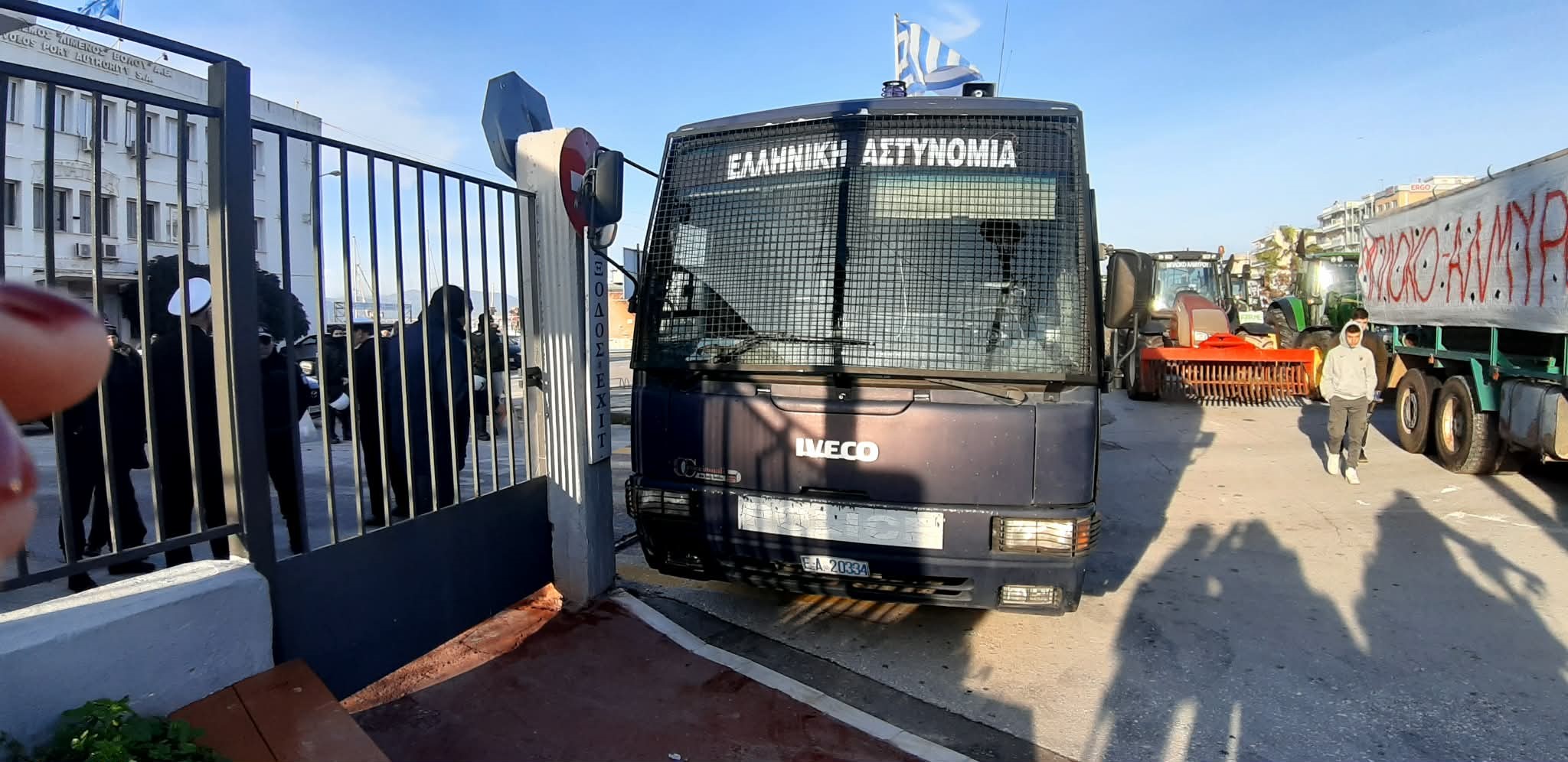 Εκεί, τους περίμεναν ισχυρές δυνάμεις των ΜΑΤ και κλούβες που είχαν παραταχθεί τόσο στην είσοδο, όσο και στην έξοδο του λιμανιού.