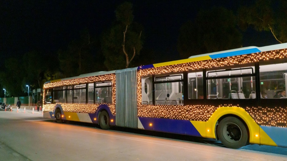 Εναρμονισμένα στο εορταστικό κλίμα, έξι λεωφορεία της ΟΣΥ (Οδικές Συγκοινωνίες) σε Αθήνα και Πειραιά πραγματοποιούν διαδρομές «ντυμένες» με φως, στέλνοντας το μήνυμα της ελπίδας και της αγάπης που εκπέμπει η γέννηση του Θεανθρώπου, αλλά και της προσμονής για μια τυχερή νέα χρονιά.