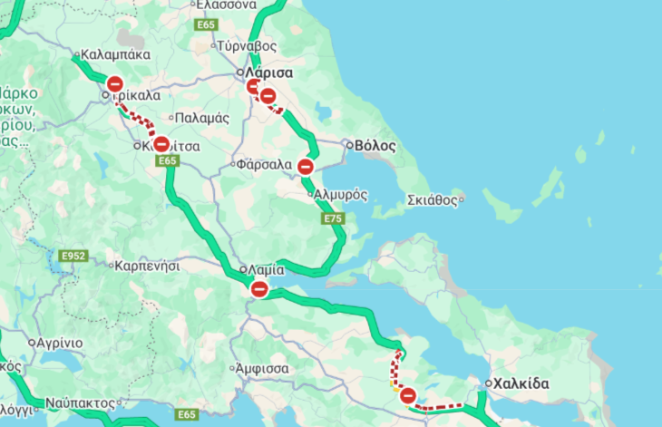 Μπλόκα και μεγάλη ταλαιπωρία περιμένει τους οδηγούς στον E65 από τους Σοφάδες ως τα Τρίκαλα.