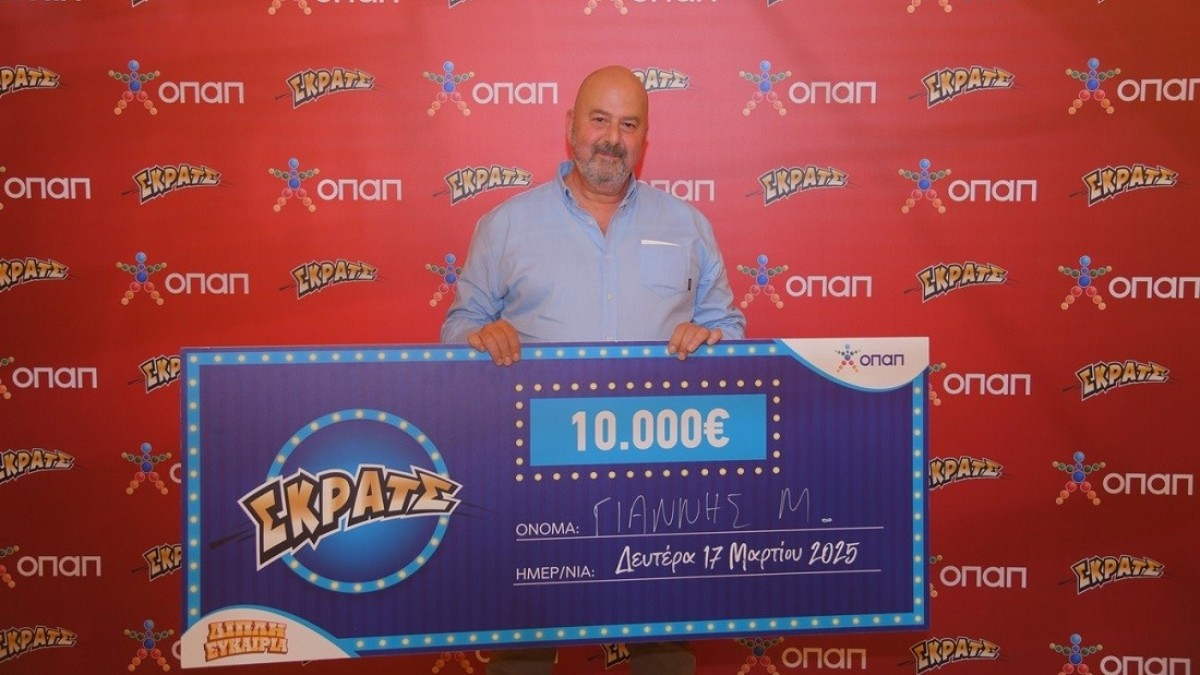 Στην πρώτη ειδική κλήρωση, προέκυψε ο αριθμός 22, που αντιστοίχησε τον Γιάννη Μ., με το πρώτο από τρία έπαθλα των 10.000 ευρώ που μοίρασε το ΣΚΡΑΤΣ. Ο ίδιος, αφού τόνισε την Κρητική του καταγωγή, ευχαρίστησε τον φίλο του Σωκράτη, ιδιοκτήτη του καταστήματος ΟΠΑΠ, από το οποίο προμηθεύτηκε τον λαχνό του ΣΚΡΑΤΣ «Διπλή Ευκαιρία».