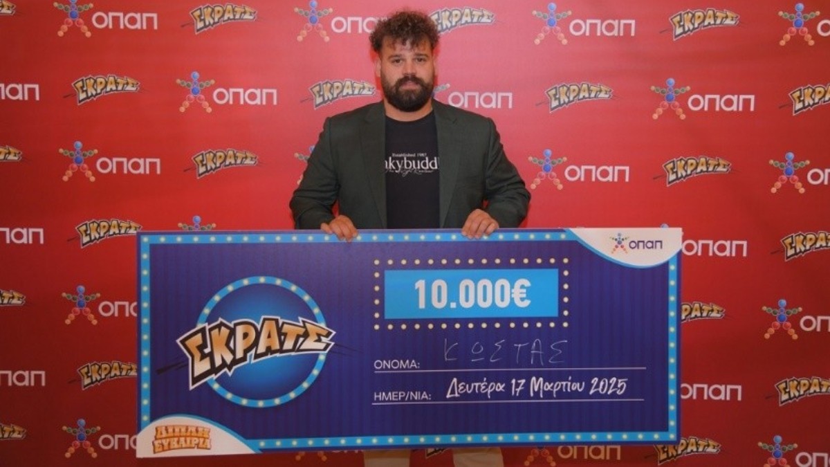 Στη συνέχεια η κληρωτίδα ανέδειξε τον αριθμό 24, με τον Άγγελο Δ. να εξασφαλίζει με τη σειρά του το ποσό των 10.000 ευρώ. Ο ίδιος, κάτοικος Κυψέλης αλλά με καταγωγή από τη Θεσσαλονίκη, τόνισε: «Έχω στην κατοχή μου ΣΚΡΑΤΣ από την 1η έκδοση, το 1990. Πρέπει να αφήνουμε όλοι, μια πόρτα ανοιχτή στην τύχη μας».