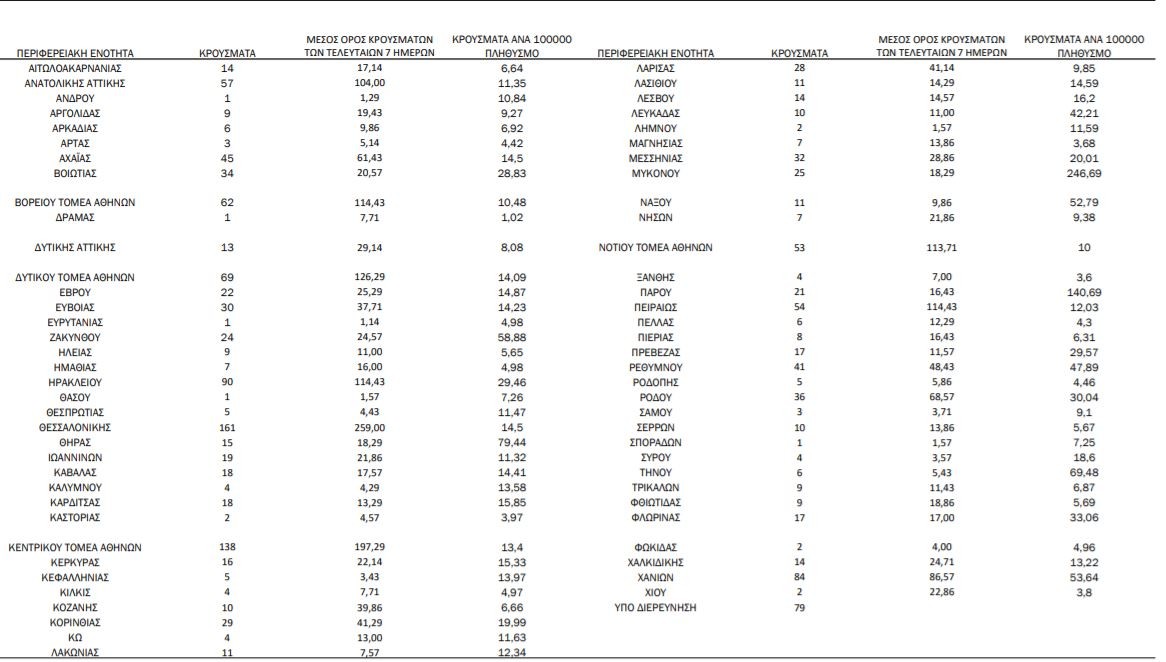 7 κρούσματα στην Π.Ε. Νήσων