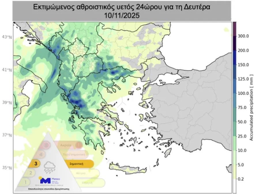 Η προσοχή μας στραμμένη το επόμενο 24ωρο στις περιοχές που ήδη προσδιορίζει η ΕΜΥ στα δυτικά και βόρεια. Τα νέα στοιχεία ενδεικτικά δείχνουν αρχικά μεγάλα ύψη βροχής, σε Κέρκυρα, Άρτα , την Αιτωλοακαρνανία, τα υπόλοιπα νησιά Ιονίου και τη Λακωνία. Από τη βόρεια Ελλάδα προσοχή… pic.twitter.com/UVTTIxwCTv— Theodoros Kolydas (@KolydasT) November 9, 2025