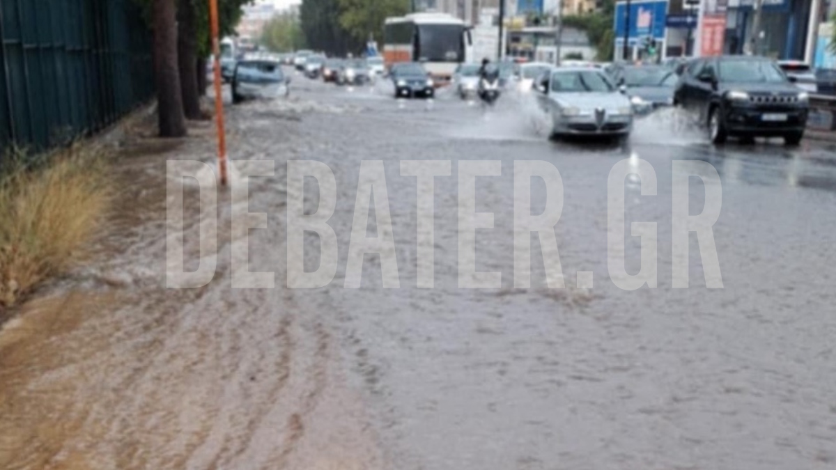 Σε ποτάμι μετατράπηκε η Λεωφόρος Μεσογείων το μεσημέρι της Πέμπτης, στο ρεύμα ανόδου και συγκεκριμένα στο ύψος της ΕΡΤ, μετά από την έντονη βροχόπτωση που έπληξε την Αττική.