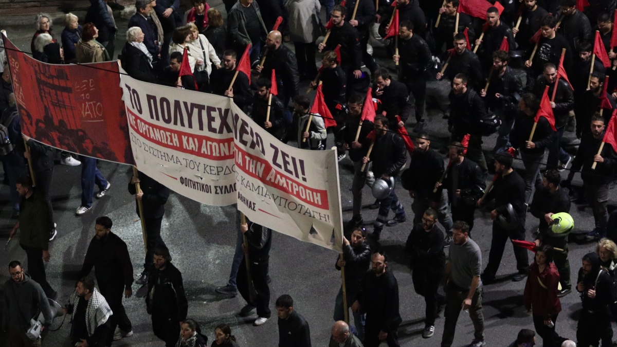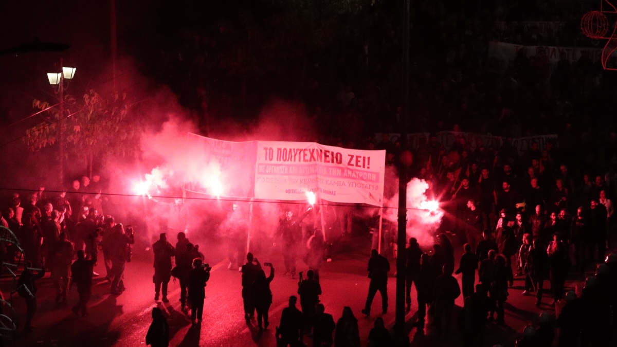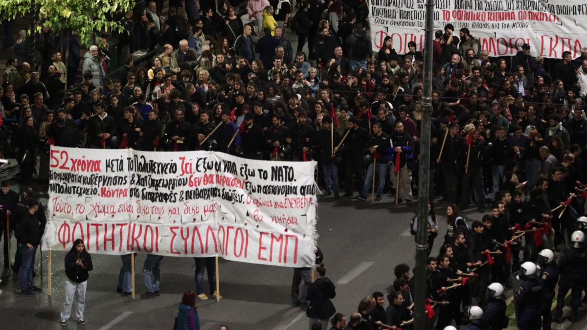 Αμέσως μετά την έξοδο της σημαίας από τον χώρο του ιστορικού κτιρίου οι οργανώσεις των φοιτητών κι οι νεολαίες των κομμάτων, με τα πανό τους και συνθήματα, κινήθηκαν από τα διαφορετικά σημεία συγκέντρωσης τους στο κέντρο της Αθήνας.