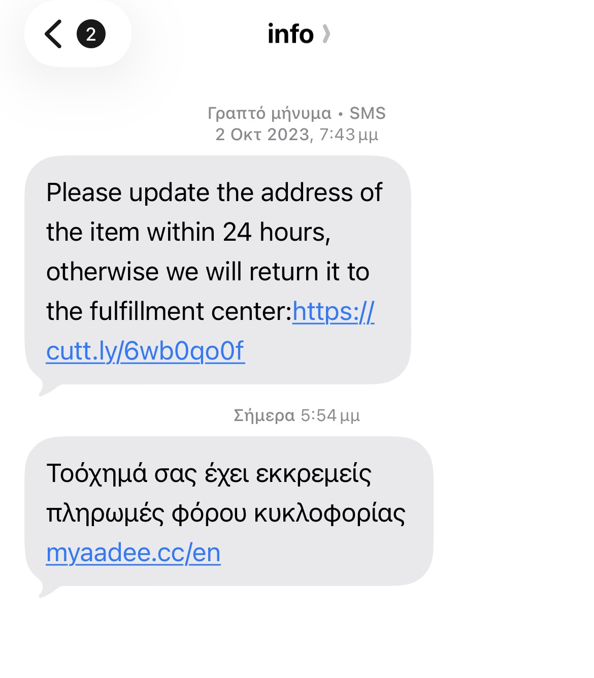 Προσοχή σε παραπλανητικά sms για ανεξόφλητα τέλη κυκλοφορίας (Εικόνα)