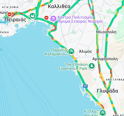 Σύμφωνα με την Τροχαία, η κίνηση διεξάγεται με δυσκολία στο ύψος του πρώτου τούνελ στο ρεύμα προς Γλυφάδα.