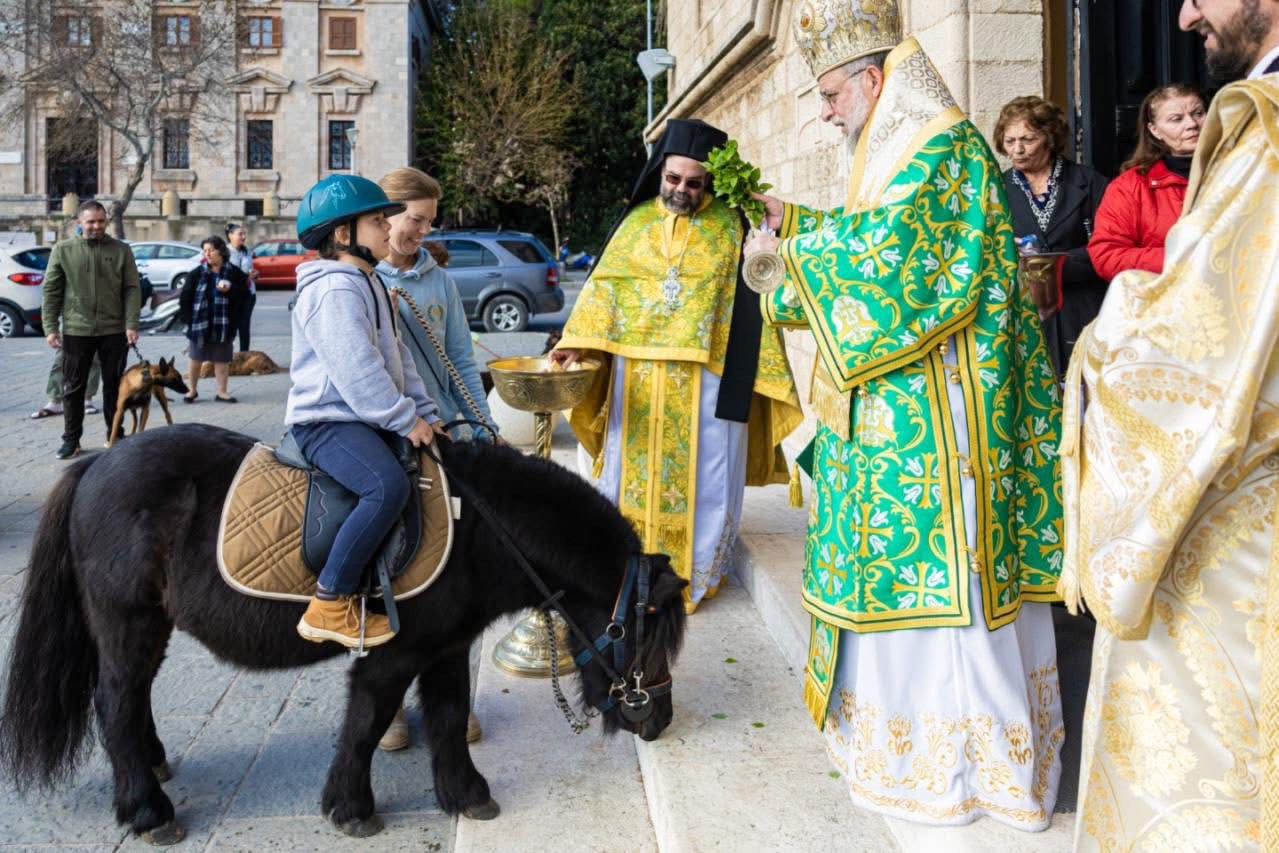 Μια ενέργεια που στις ημέρες μας την βλέπεις σπάνια έγινε στο νησί του Ήλιου. Στη θεία λειτουργία χοροστάτησε μάλιστα ο Σεβασμιώτατος Μητροπολίτης Ρόδου κ. Κυρίλλος που τέλεσε και ο ίδιος τον αγιασμό των ζώων.