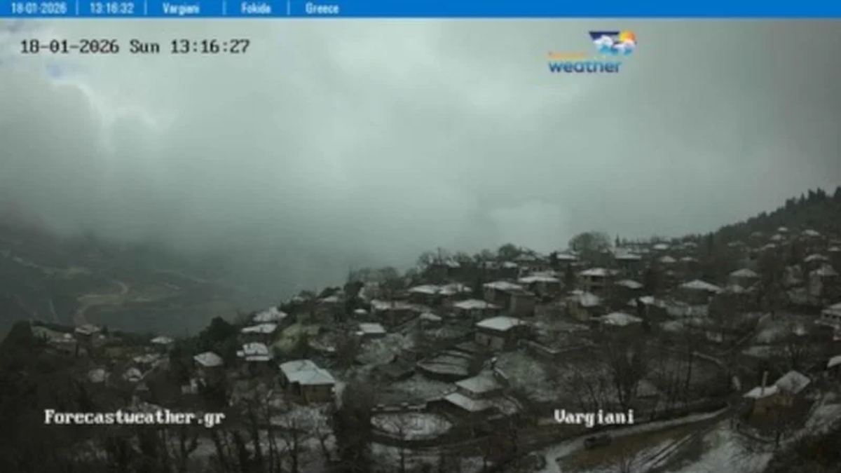 Χιονόπτωση σημειώθηκε και στα ορεινά της Φωκίδας με τις ορεινές περιοχές του Παρνασσού να έχουν καλυφθεί από ένα «λευκό πέπλο».