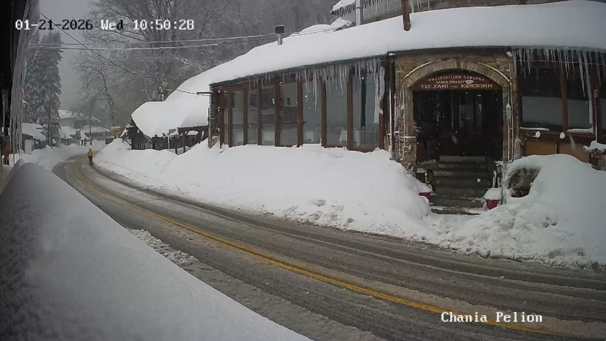 Ξεπερνά το 1,5 μέτρο το ύψος του χιονιού στα Χάνια με την κυκλοφορία να πραγματοποιείται με τη χρήση αντιολισθητικών αλυσίδων με τα μηχανήματα της Περιφέρειας να καθαρίζουν συνεχώς τον δρόμο Βόλου – Ζαγοράς, σύμφωνα με το magnesianews.gr.