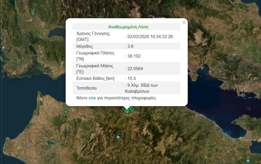 Σεισμός 3,6 της κλίμακας Ρίχτερ σημειώθηκε λίγο μετά τις 12 και μισή κοντά στα Καλάβρυτα και έγινε αισθητή και σε άλλες περιοχές της Αχαΐας.
