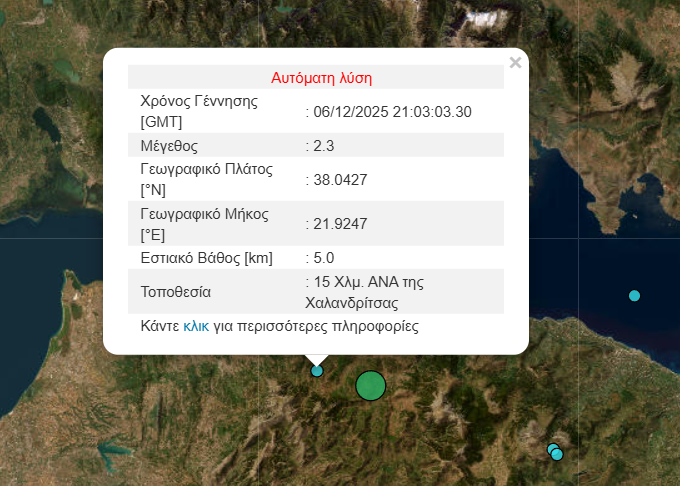 Ακολούθησε ένας μετασεισμός 2,3 Ρίχτερ με επίκεντρο τα 15 χιλιόμετρα ΑΝΑ της Χαλανδρίτσας, με εστιακό βάθος τα 5 χιλιόμετρα.