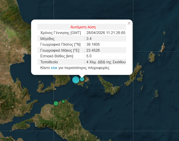 Αναταραχή επικράτησε στην Σκιάθο μετά από σεισμό 4,7 Ρίχτερ που χτύπησε την περιοχή το μεσημέρι της Τρίτης (28/4).