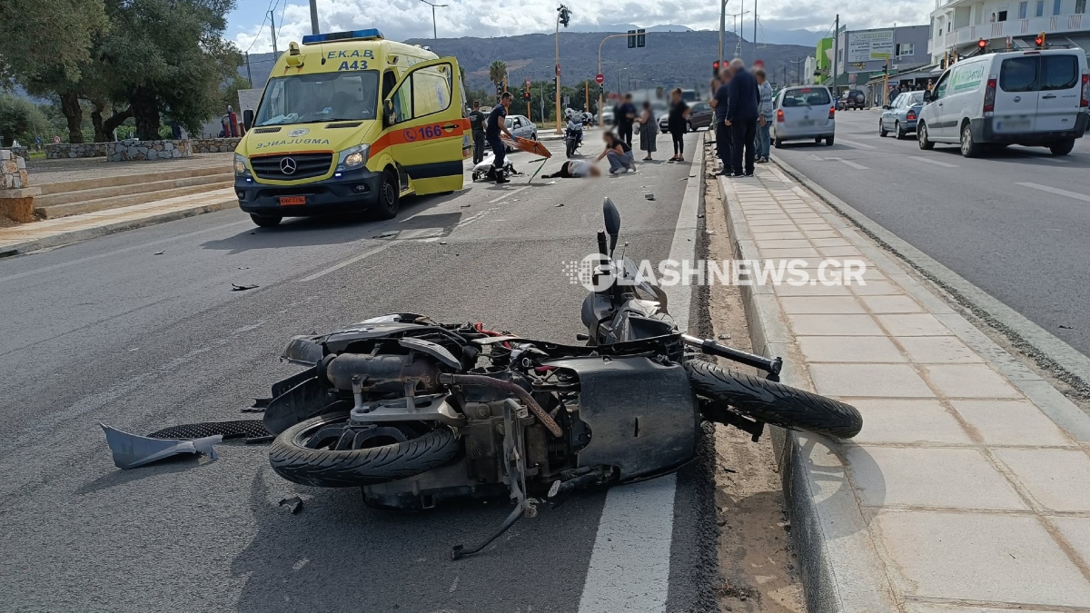 Σοκαριστικό τροχαίο στα Χανιά: Οδηγός μηχανής έπεσε πάνω σε παρμπρίζ αυτοκινήτου μετά από σύγκρουση (φωτογραφίες)