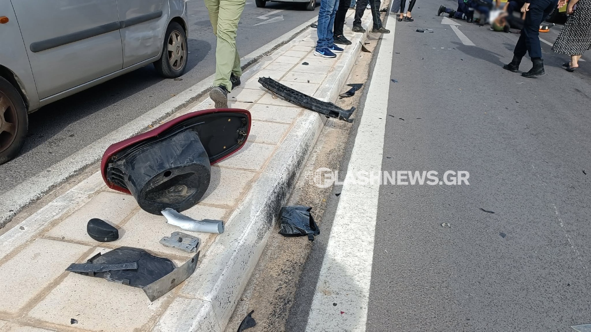 Τα συντρίμμια της μοτοσυκλέτας, μάλιστα, σκορπίστηκαν σε μεγάλη απόσταση στον δρόμο, ενώ το όχημα σταμάτησε σε απόσταση πολλών μέτρων από το σημείο του ατυχήματος.