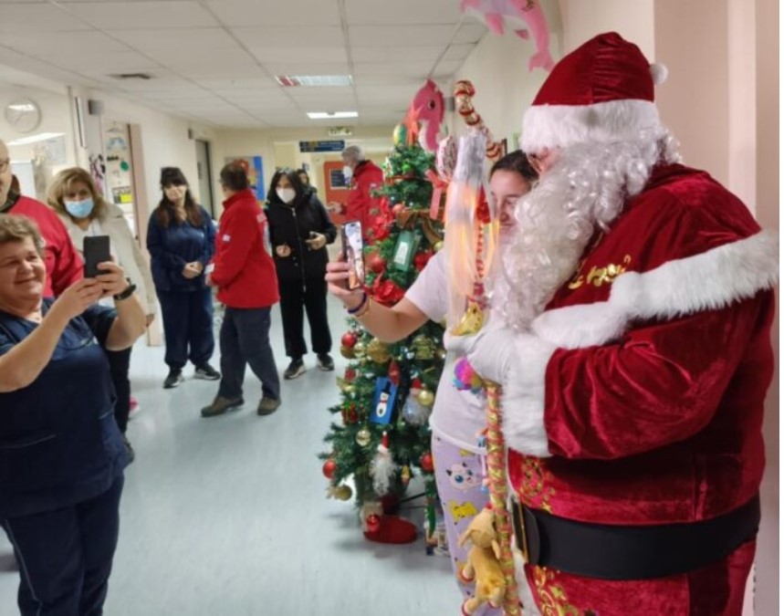 Μια ευχάριστη έκπληξη περίμενε τους μικρούς ασθενείς της Παιδιατρικής Κλινικής του Νοσοκομείου Βόλου, καθώς ο Άγιος Βασίλης αναρριχήθηκε στην οροφή του κτιρίου προσφέροντας δώρα στα παιδιά της μονάδας.