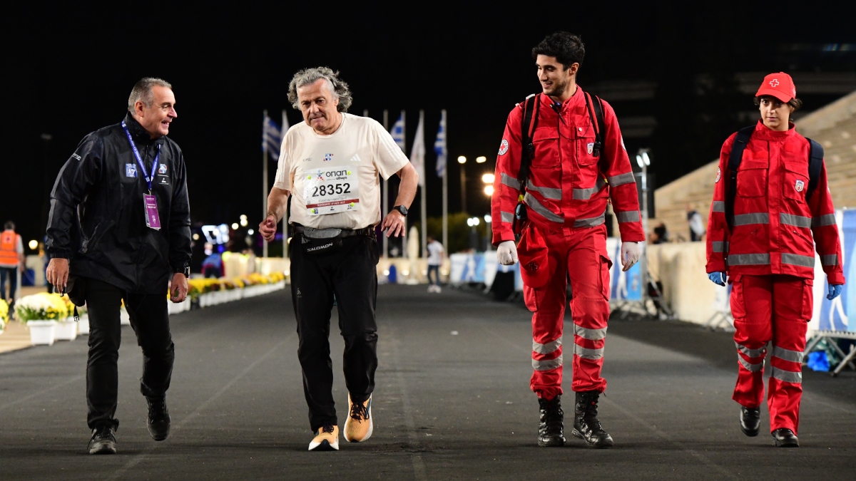 Ο 67χρονος Ιωακείμ Υφαντίδης, συνταξιούχος καταγραφέας στους μετρητές της ΕΥΔΑΠ, ολοκλήρωσε τη διαδρομή των 42,195 χιλιομέτρων έπειτα από σχεδόν 8 ώρες και εισήλθε στο Παναθηναϊκό Στάδιο, όπου τον υποδέχθηκε η πρόεδρος του ΣΕΓΑΣ, Σοφία Σακοράφα.