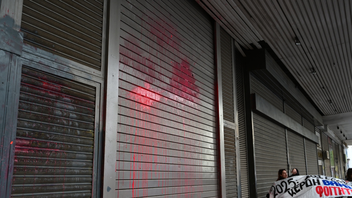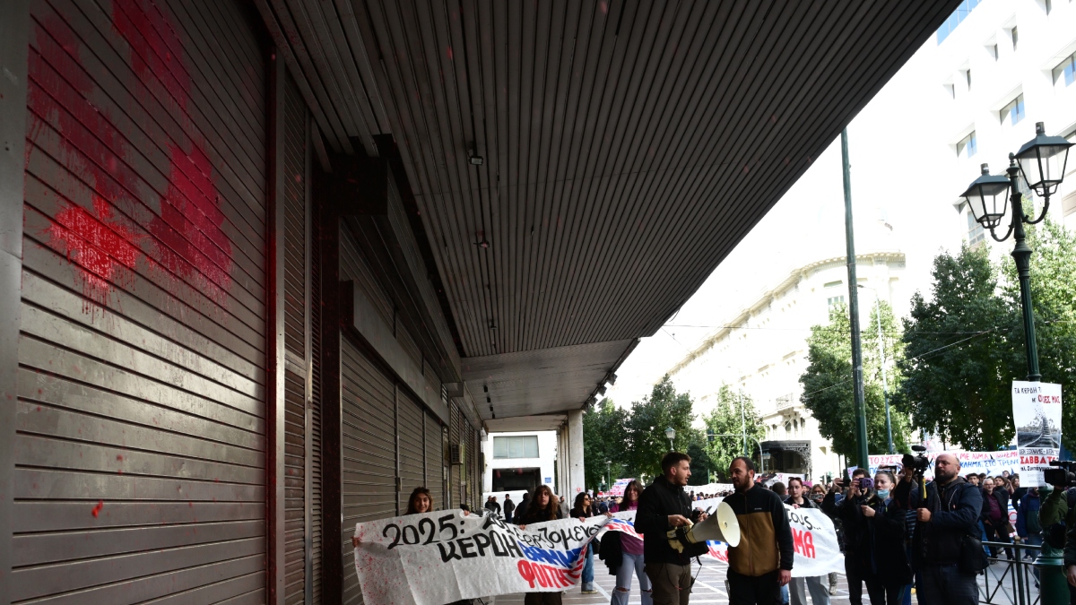 Συλλαλητήριο για τα Τέμπη: Φοιτητές πέταξαν μπογιά στο υπουργείο Εργασίας (φωτογραφίες)