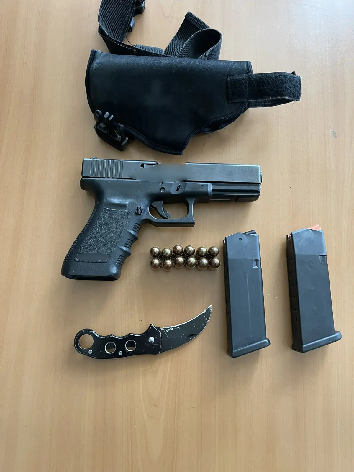 Σύμφωνα με την ΕΛΑΣ, ο 44χρονος αλλοδαπός εντοπίστηκε το μεσημέρι της Τρίτης (9/12) να κινείται με δίκυκλο σε σημείο των Πετραλώνων. και τον κάλεσαν σε έλεγχο, στο πλαίσιο του οποίου εντόπισαν στην κατοχή του: πιστόλι, θήκη πιστολιού, 2 γεμιστήρες με 12 φυσίγγια και αναδιπλούμενο μαχαίρι.